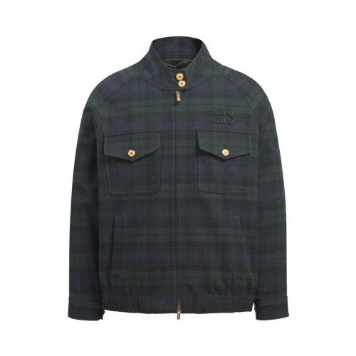 MIUMIU 미우미우 로고 패치 체크 블루종 자켓 > 집업/자켓