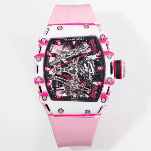 RICHARD MILLE 리차드밀 부바왓슨 투르비옹 화이트/핑크 NTPT 카본 스켈레톤 다이얼 화이트 러버 스트랩 RM38-02