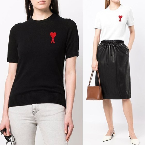 • AMI 아미 레드하트 니트반팔