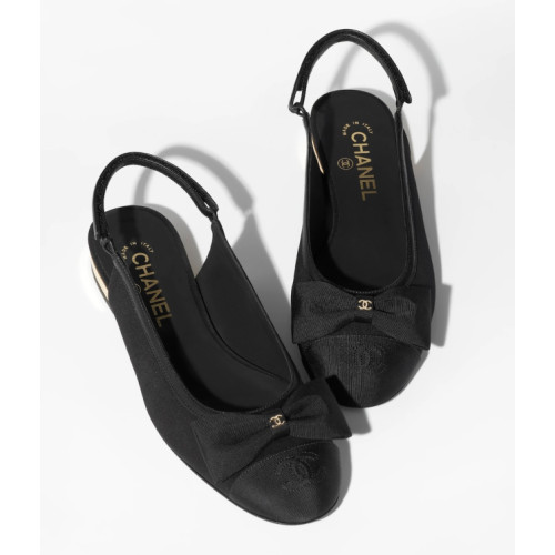 ●샤넬 리본 로고 블랙 슬링 플랫 슈즈●